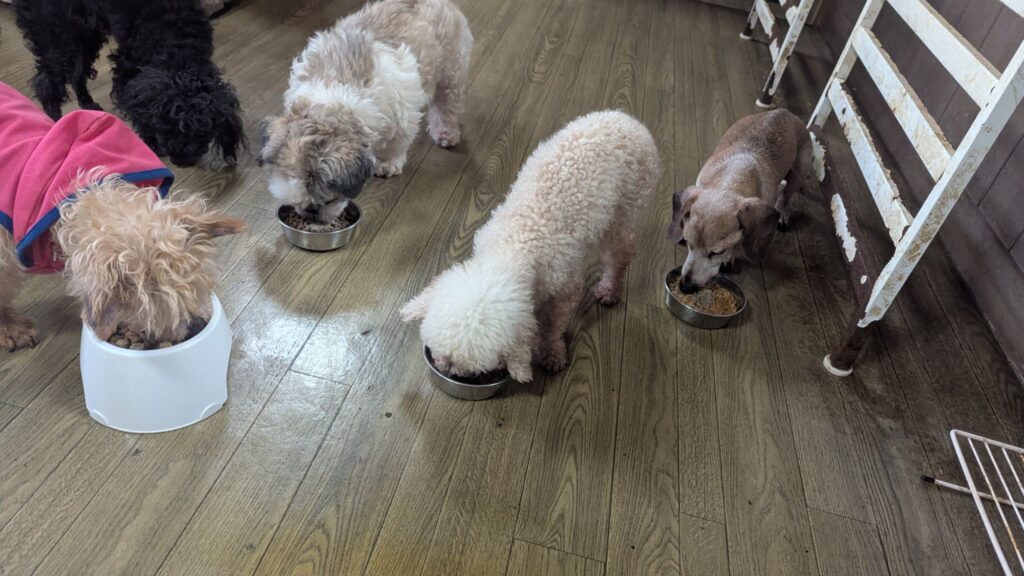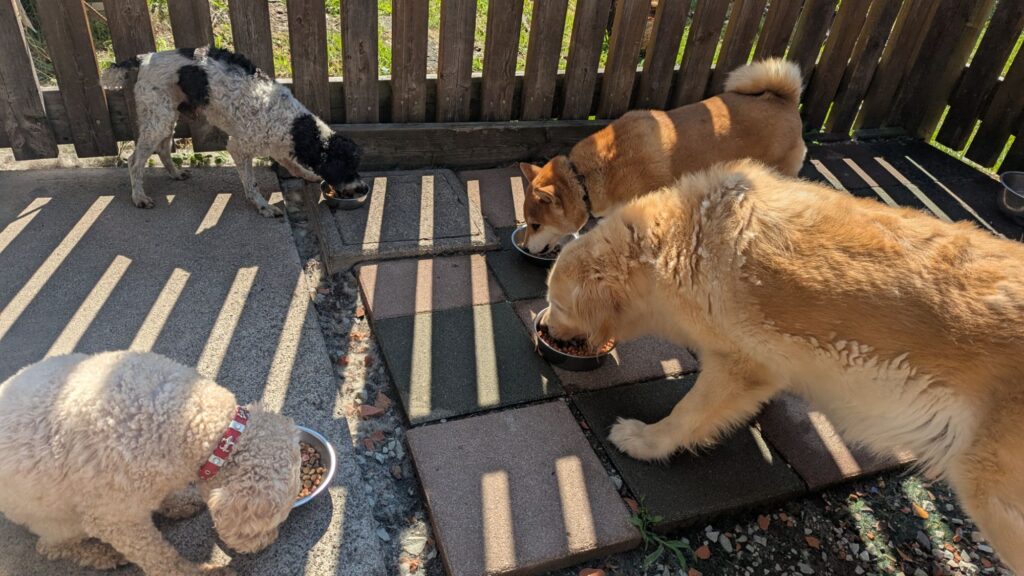 生涯お預かりミックスサスケくん、柴犬ハルちゃん、マルプーらんまるくん、ボルゾイはなこちゃんしっかり完食しました。
