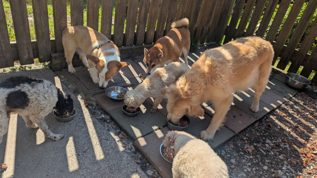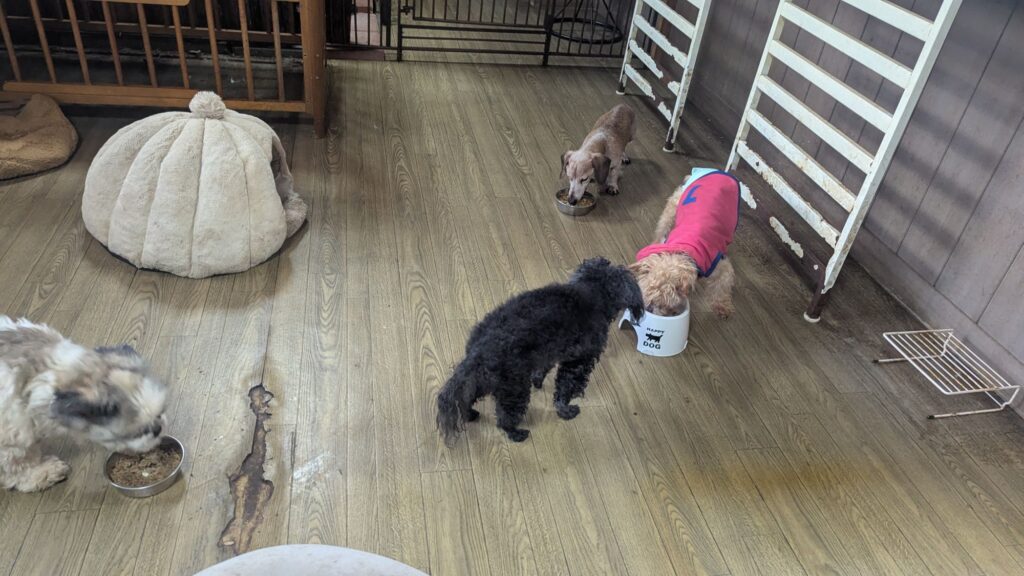 生涯お預かりミックスサスケくん、柴犬ハルちゃん、マルプーらんまるくん、ボルゾイはなこちゃんしっかり完食しました。