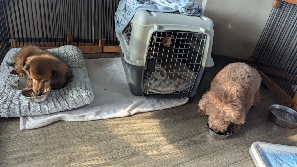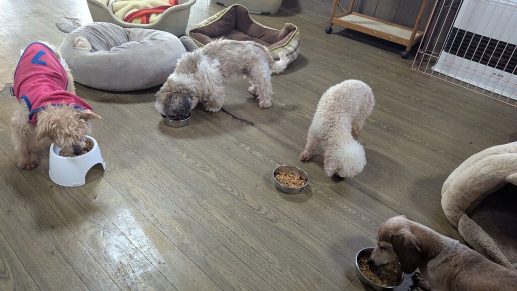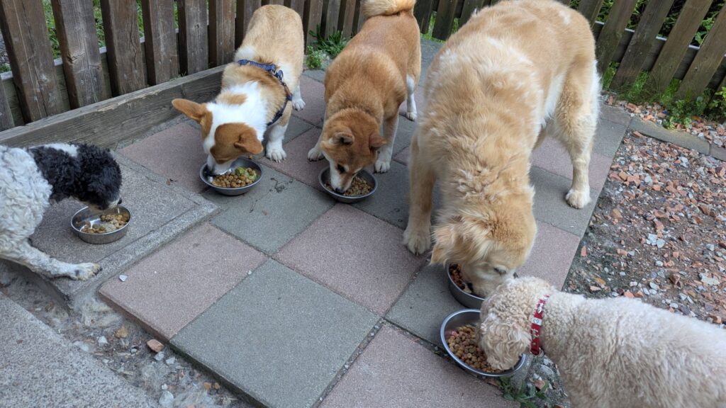 生涯お預かりミックスサスケくん、柴犬ハルちゃん、マルプーらんまるくん、ボルゾイはなこちゃんしっかり完食しました。