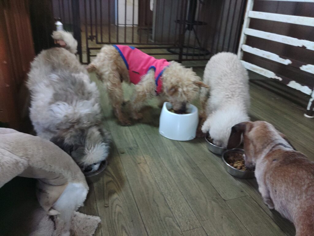 生涯お預かりミックスサスケくん、柴犬ハルちゃん、マルプーらんまるくん、ボルゾイはなこちゃんしっかり完食しました。