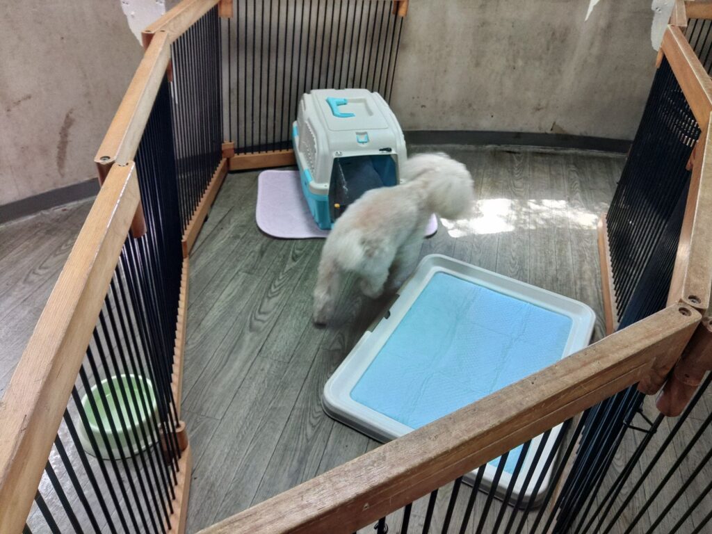 始めはサークルの中を走り回ってましたが、すぐにハウスにとじ込もってしまいました。