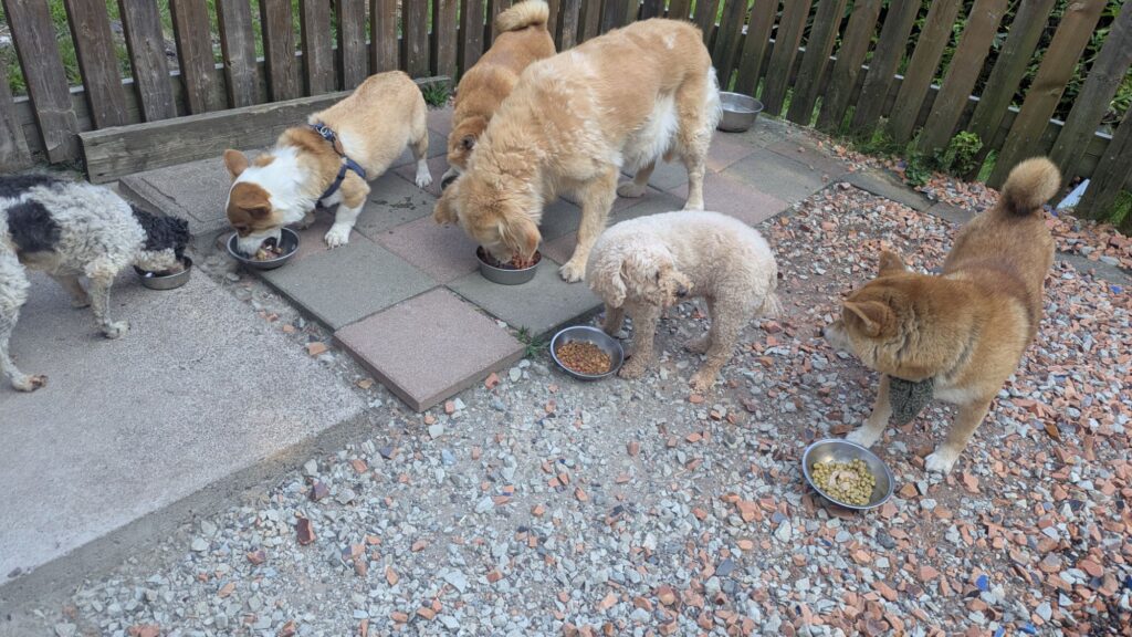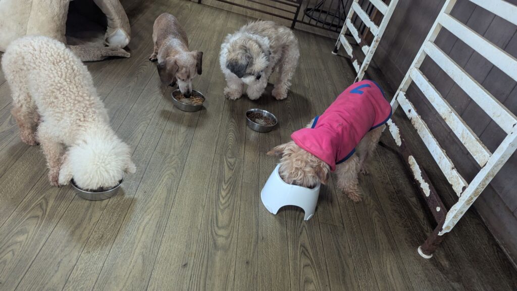 生涯お預かりミックスサスケくん、柴犬ハルちゃん、マルプーらんまるくん、ボルゾイはなこちゃんしっかり完食しました。