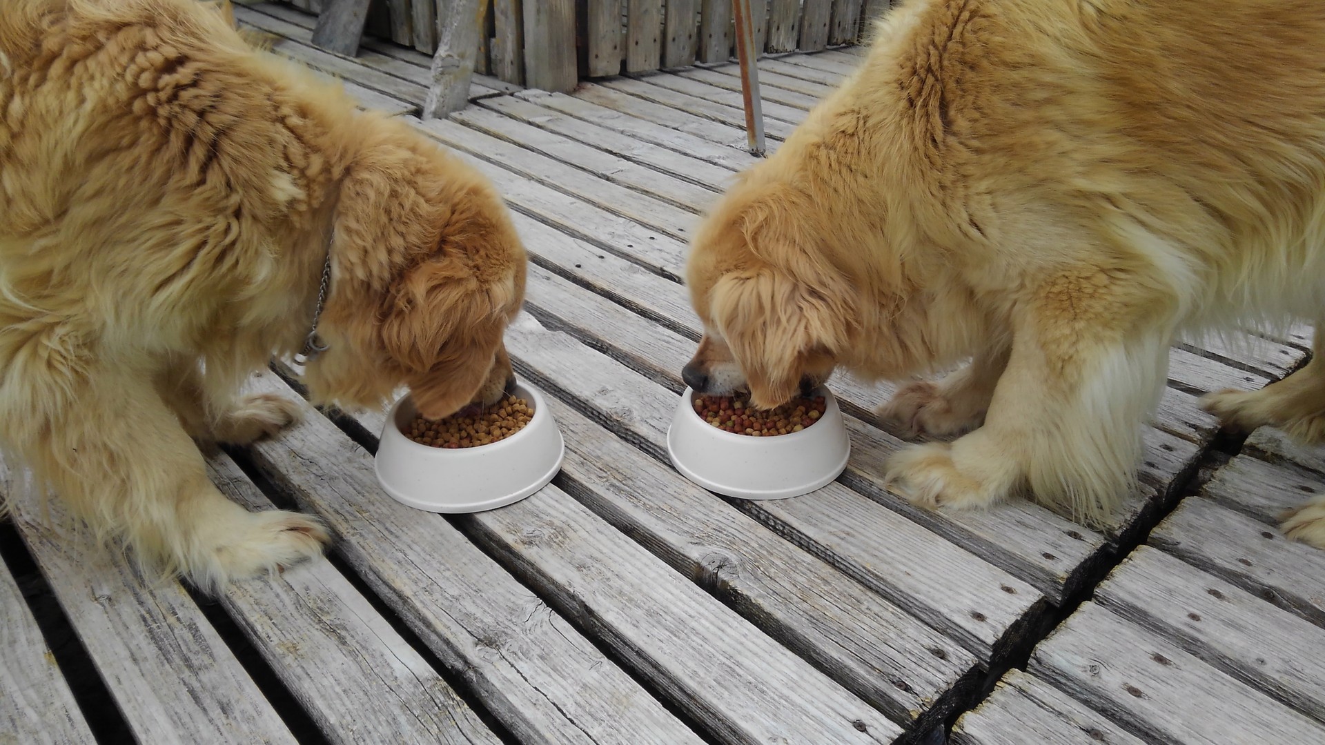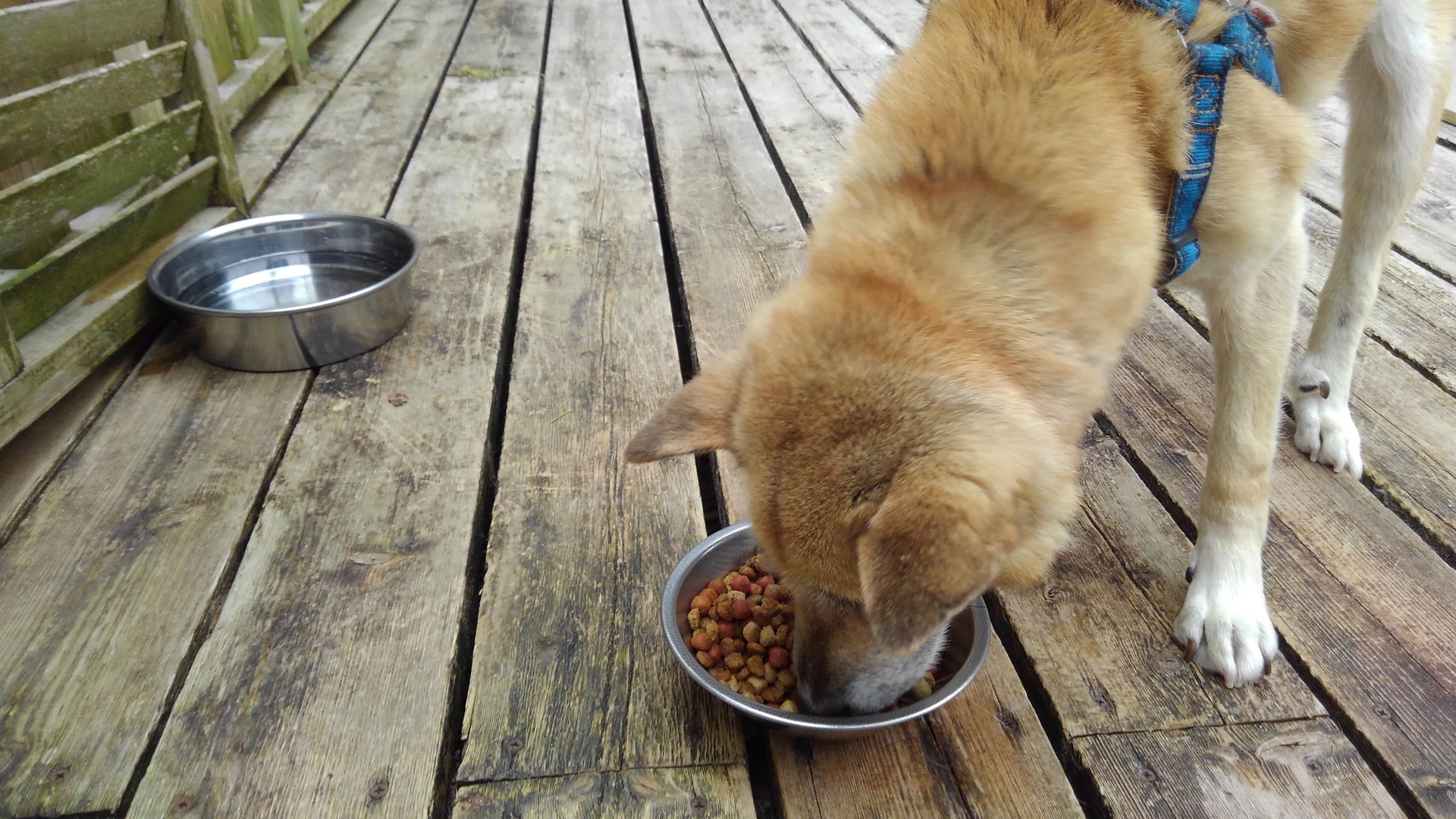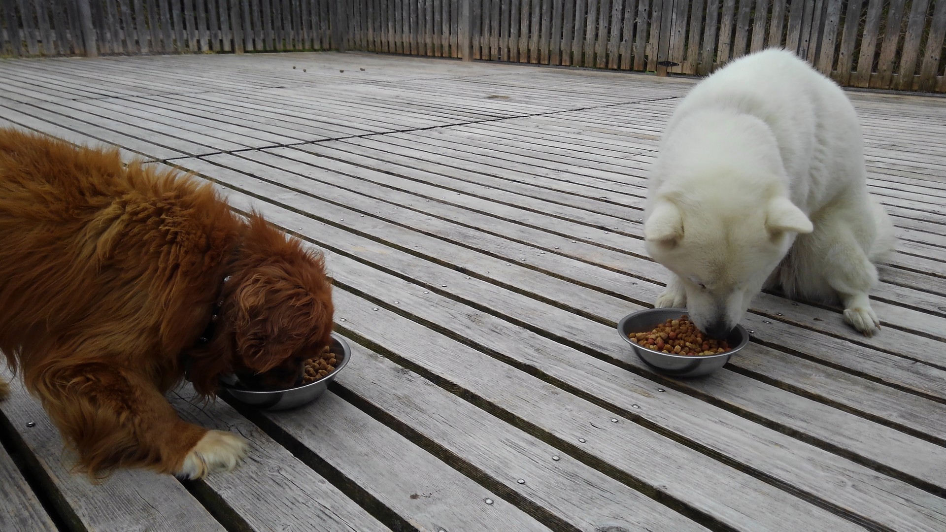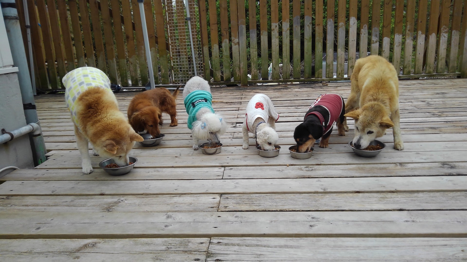 生涯預かり柴凜ちゃんと北海道犬リボンちゃん、ミックスのんちゃんとチビちゃんしっかり完食しました。