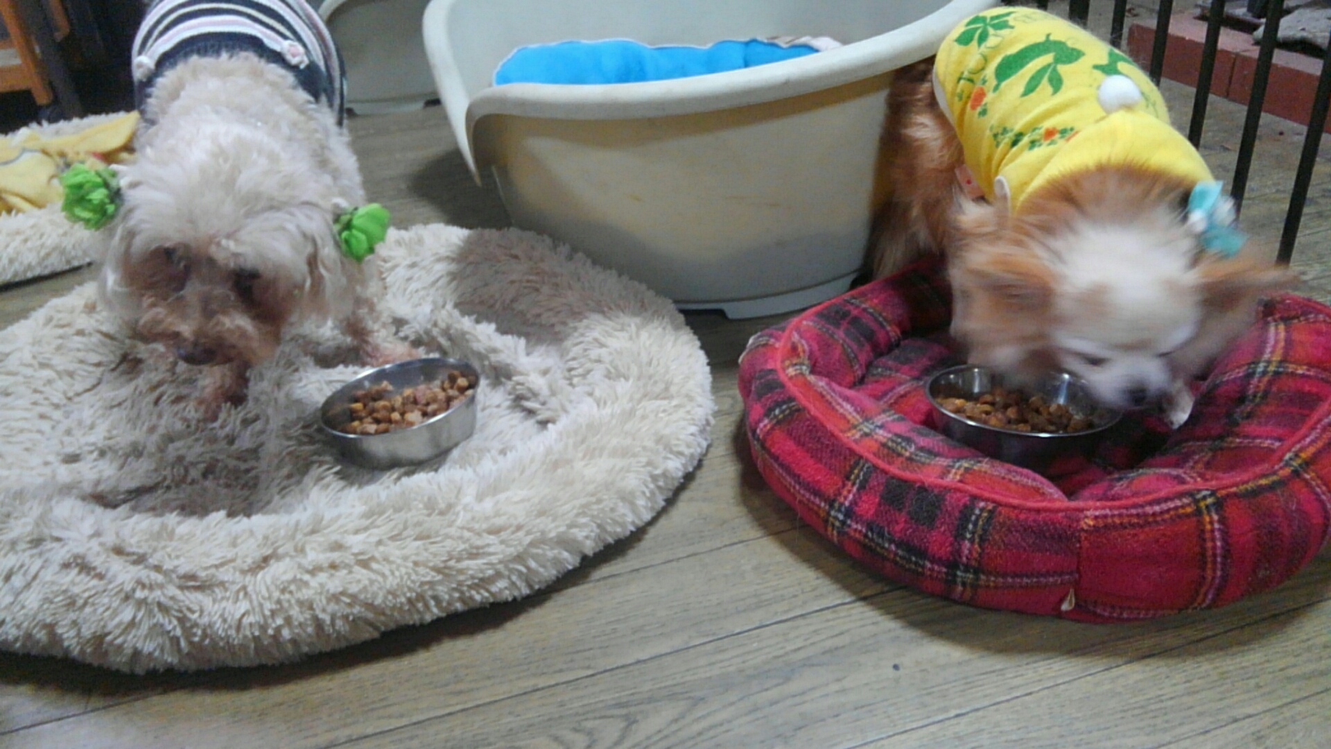 生涯預かりチワワ姫ちゃんとバロン君、トイプーベラちゃんしっかり完食しました。