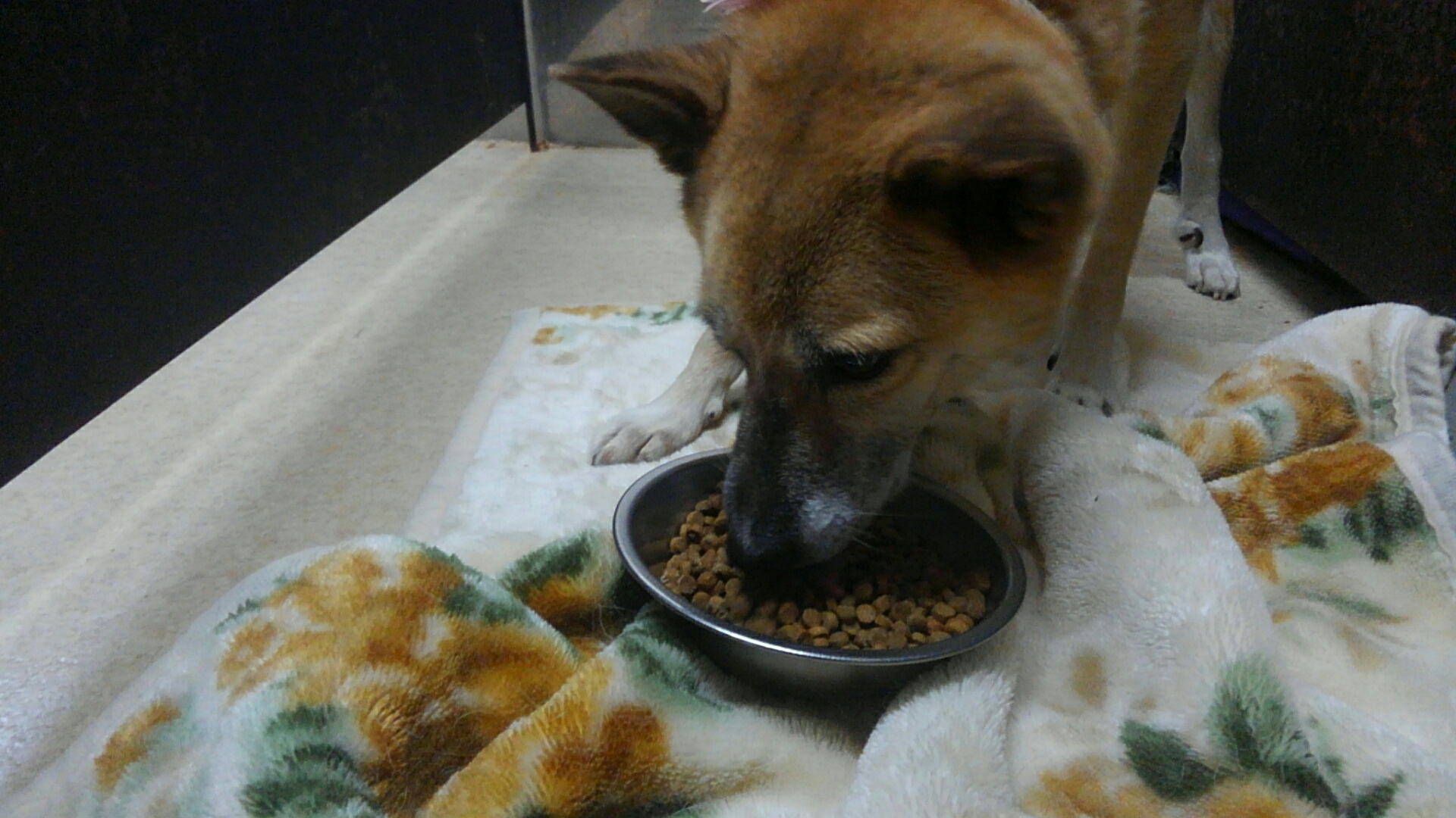 生涯預かりミックスのんちゃんがキュウちゃんとチビちゃん、しっかり完食しました。