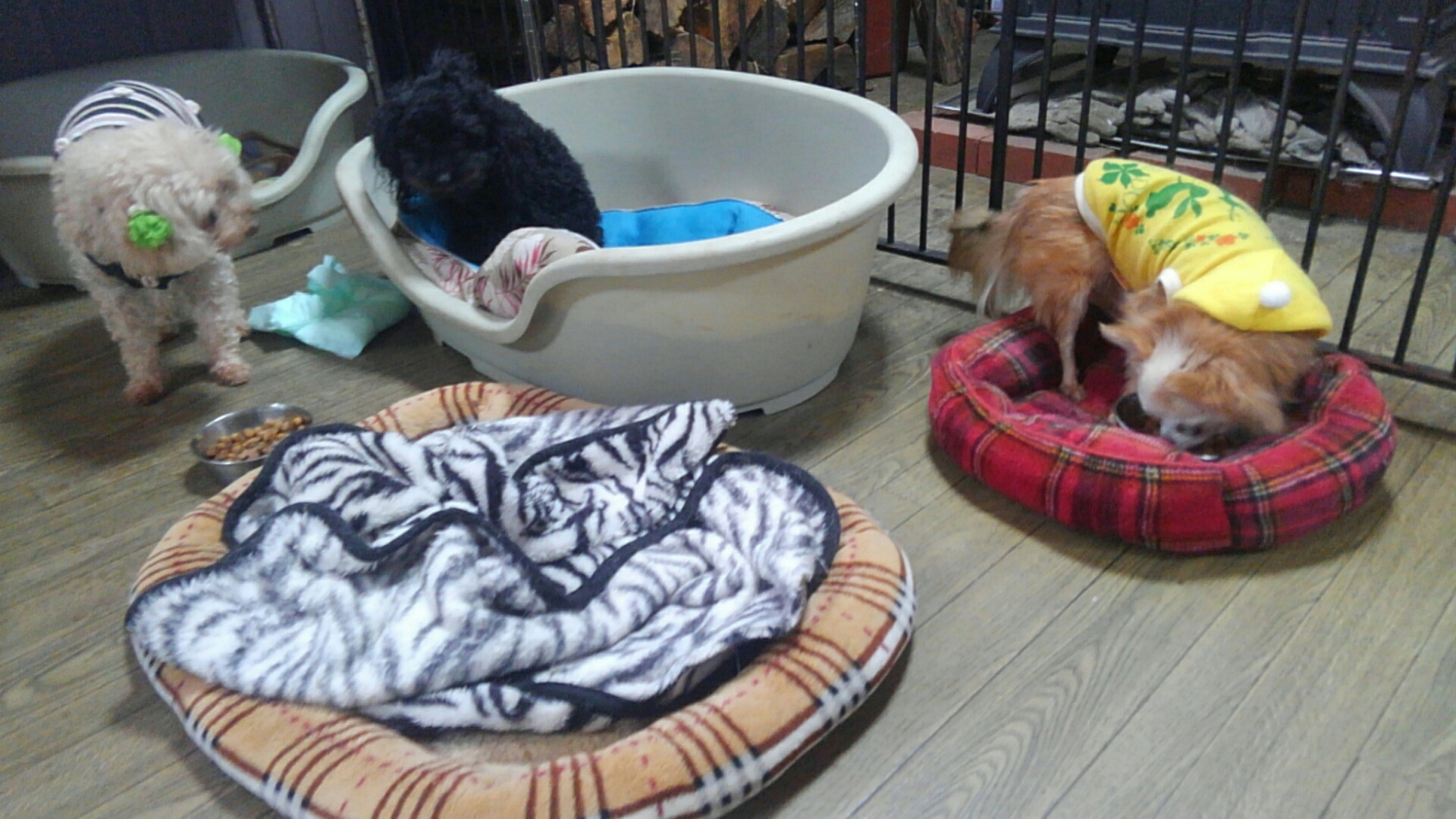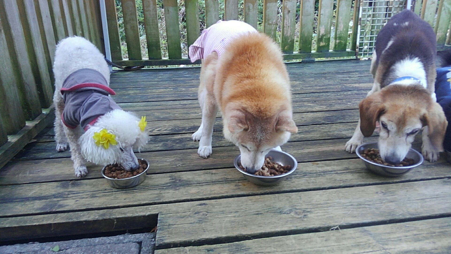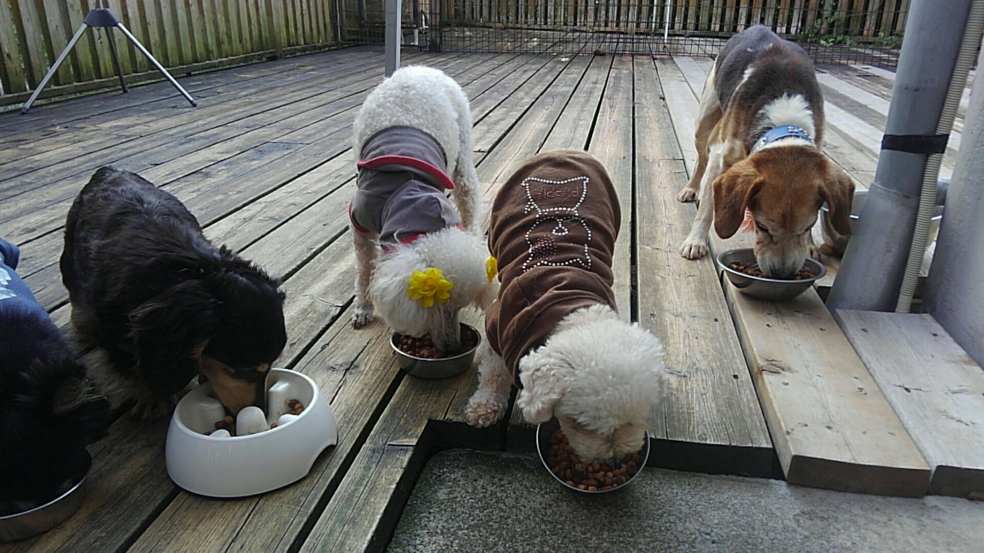 生涯預かりパピヨンパピー君と柴凛ちゃん、トイプーベラちゃんとビーグルアンディ君しっかり完食しました。
