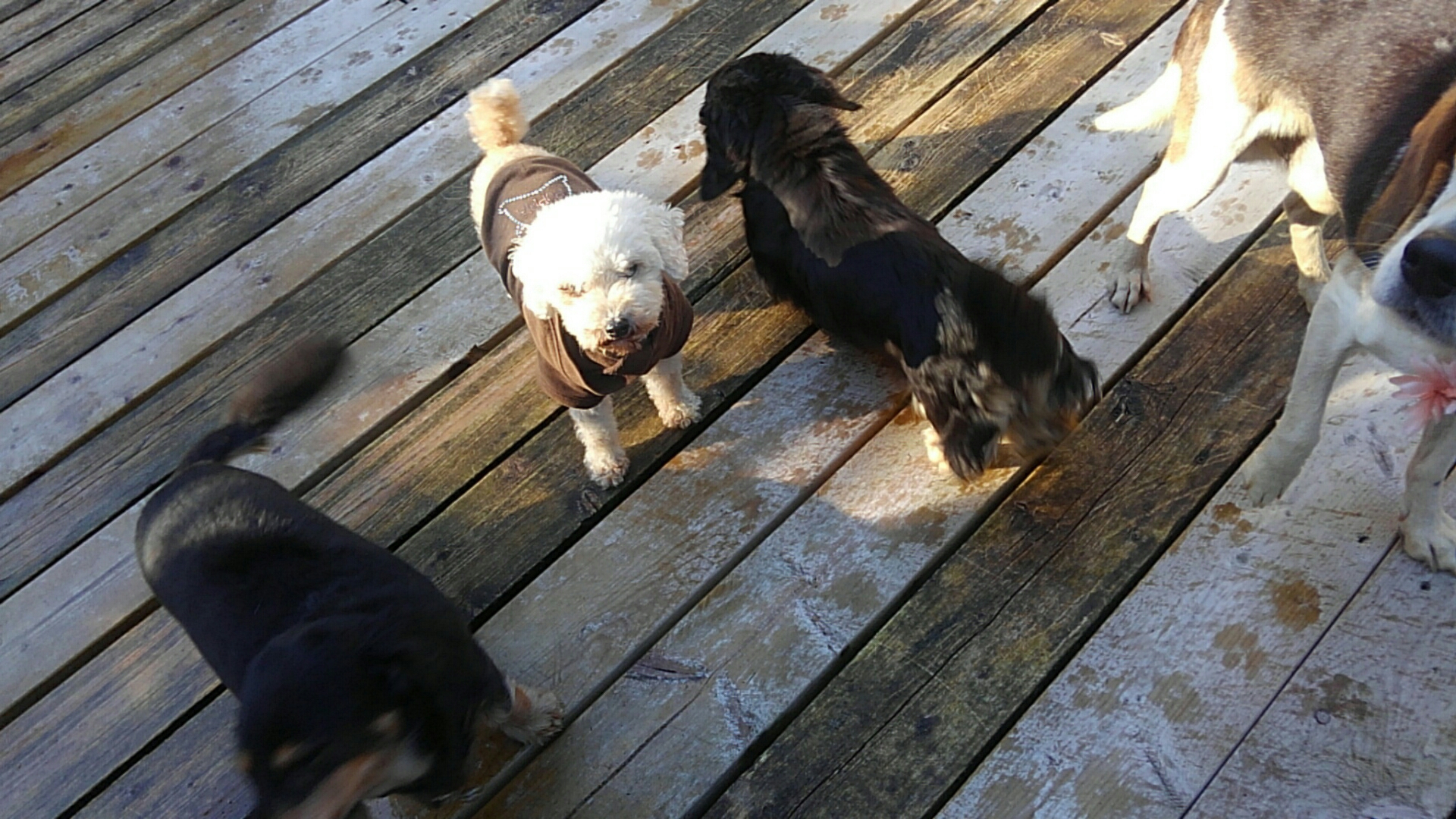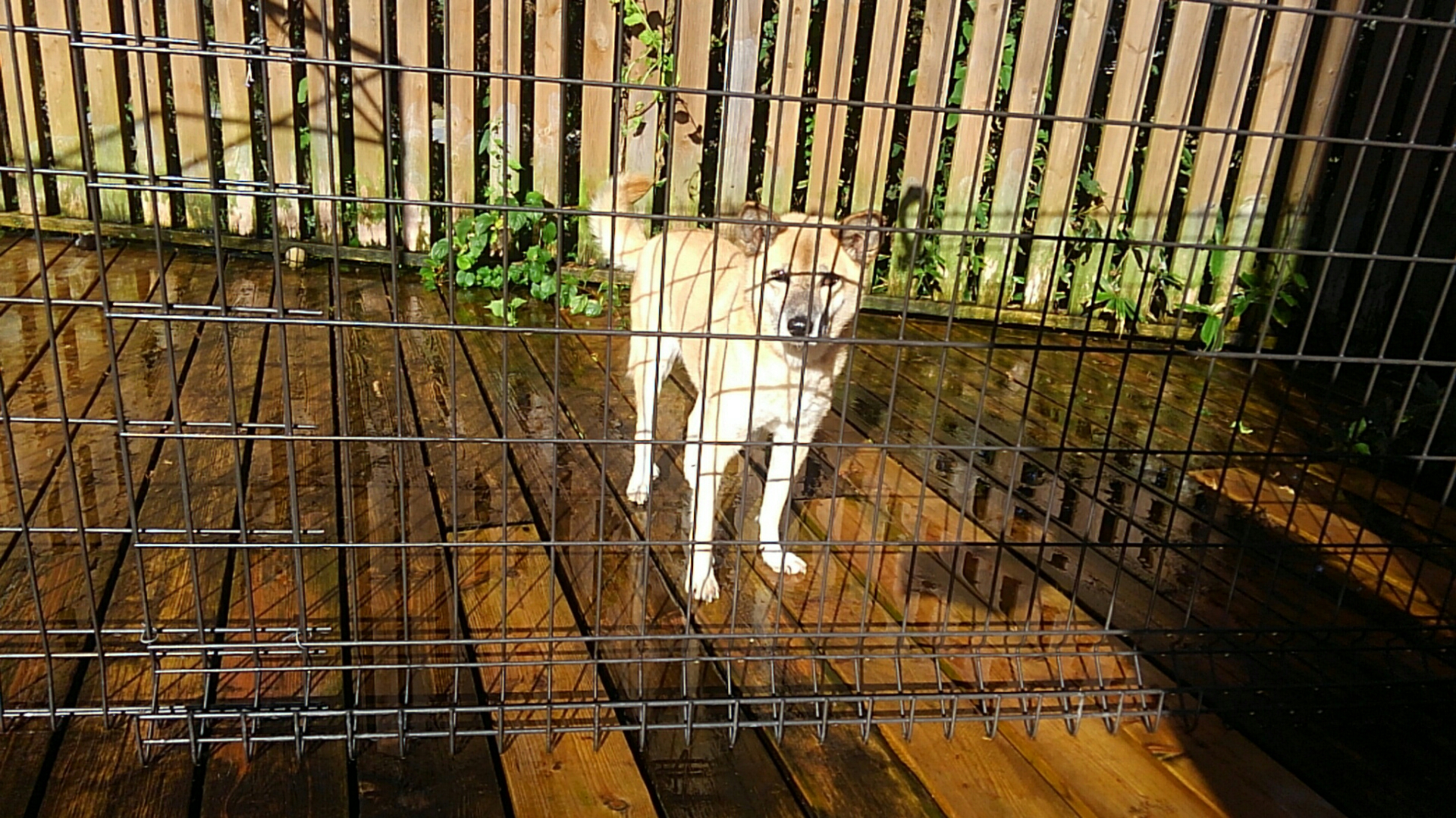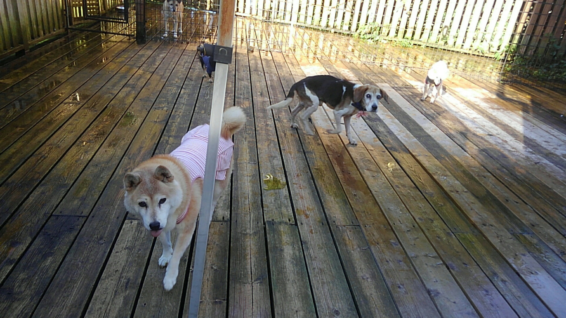 アクティブ組は全部デッキに出たので、まだワンコが不慣れなパピヨンパピー君をサークルから出してます。穏やか組と一緒なら緊張するのも和らいで来ました。