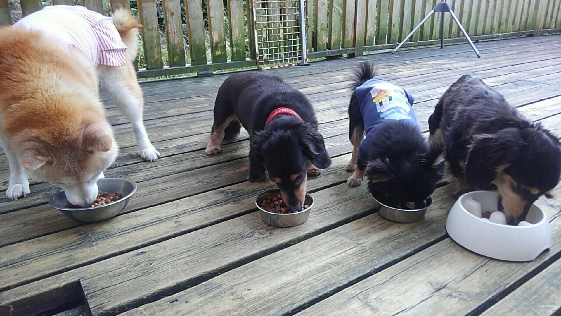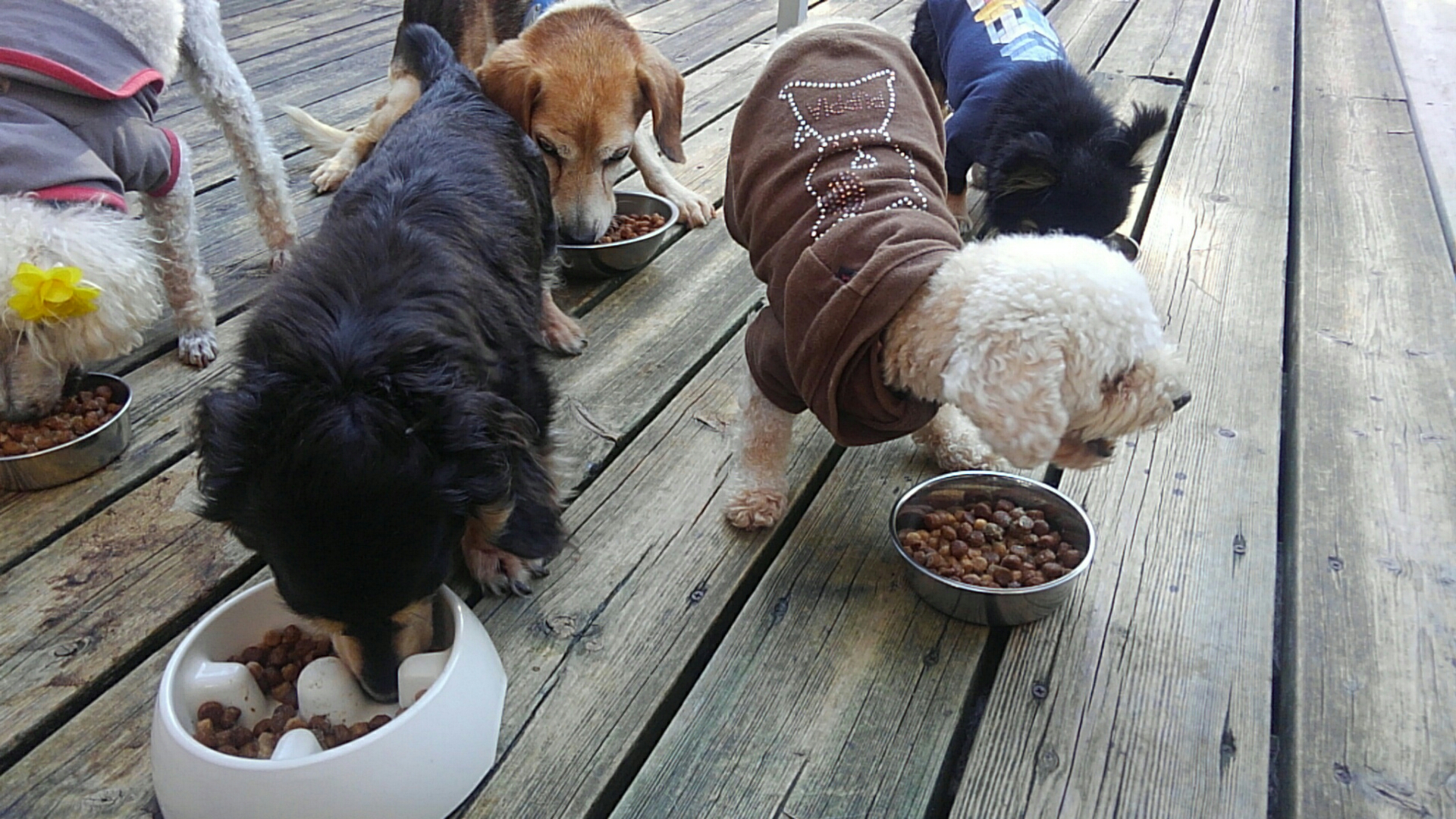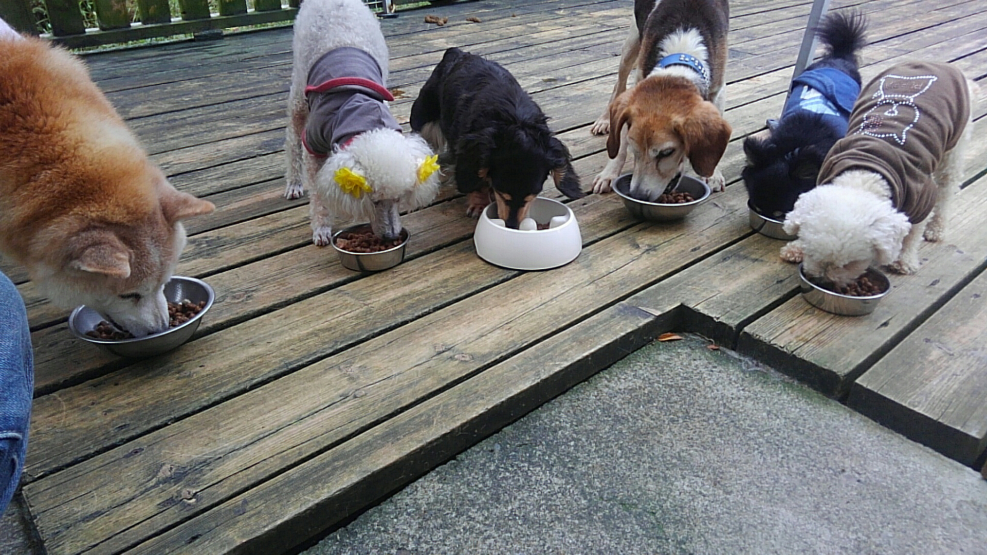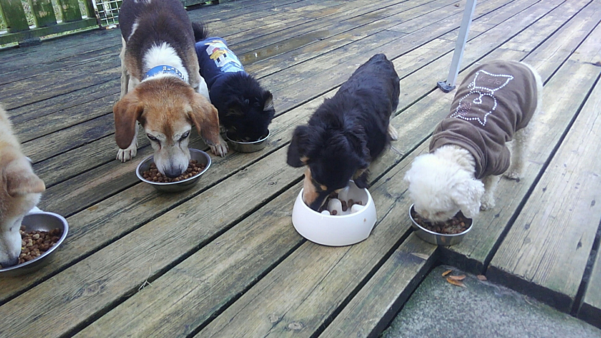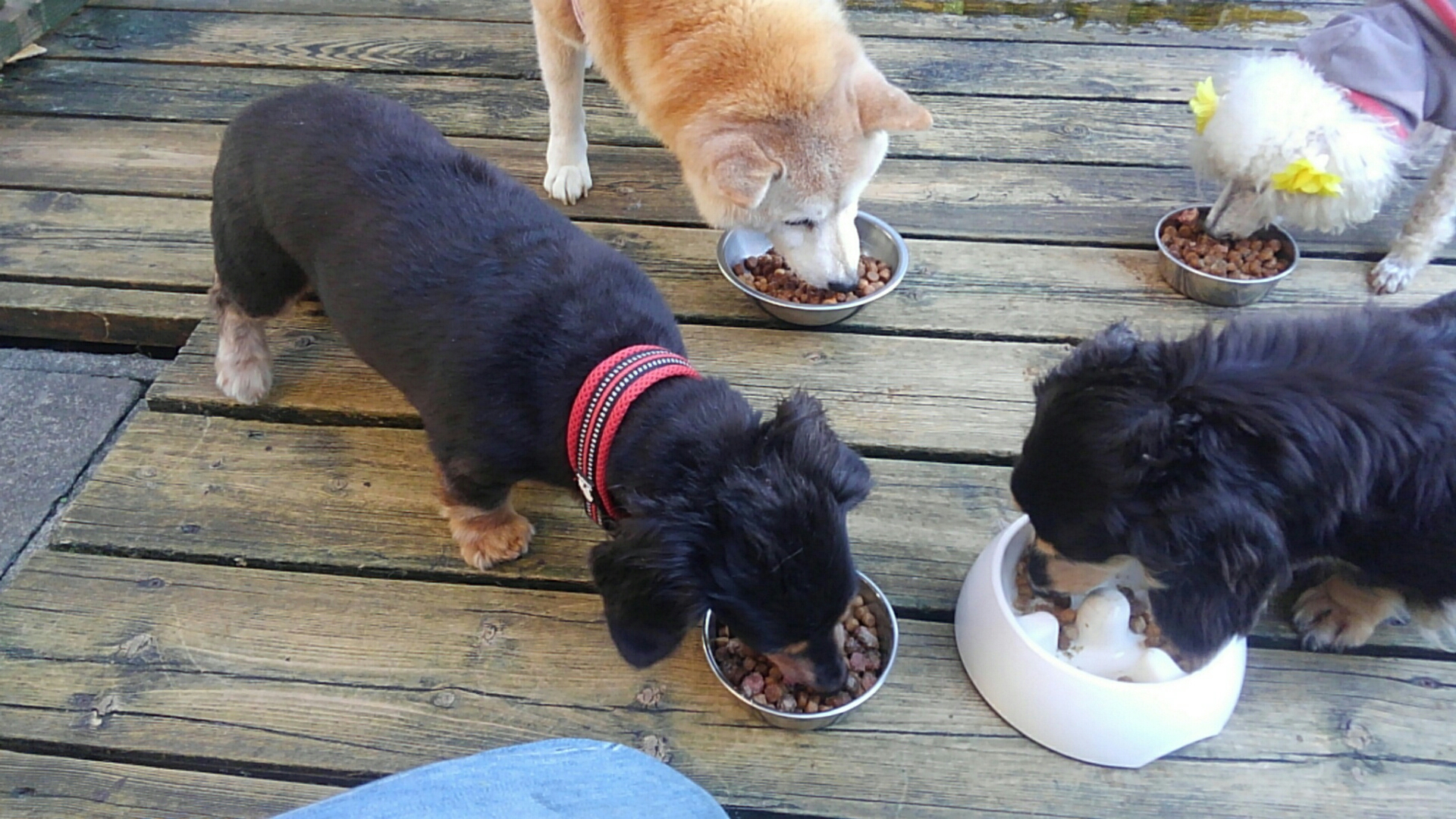 生涯預かりパピヨンのパピー君と柴凛ちゃん、トイプーベラちゃんとビーグルアンディ君しっかり完食しました。