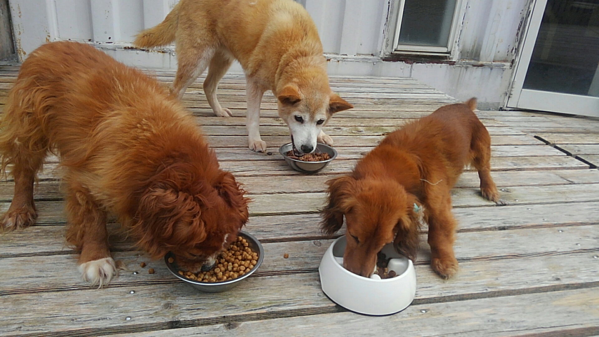 生涯預かりミックスキュウちゃんとチビちゃんとのんちゃん、しっかり完食しました。