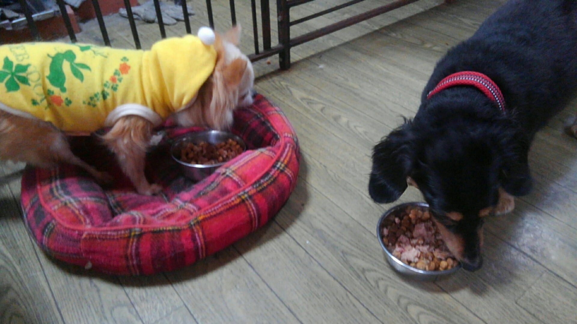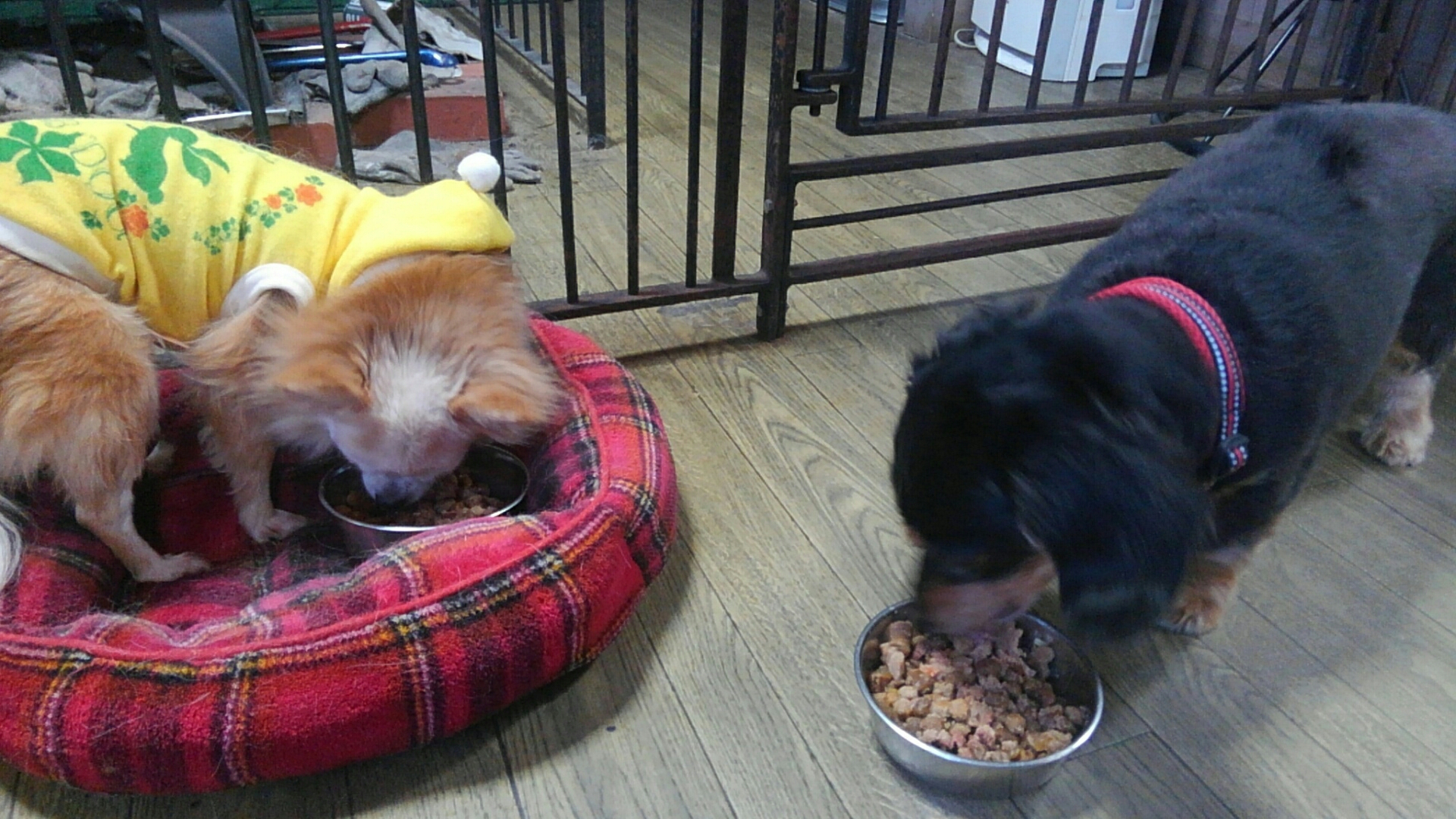 生涯預かりミックスキュウちゃんとチビちゃん、のんちゃんしっかり完食しました。