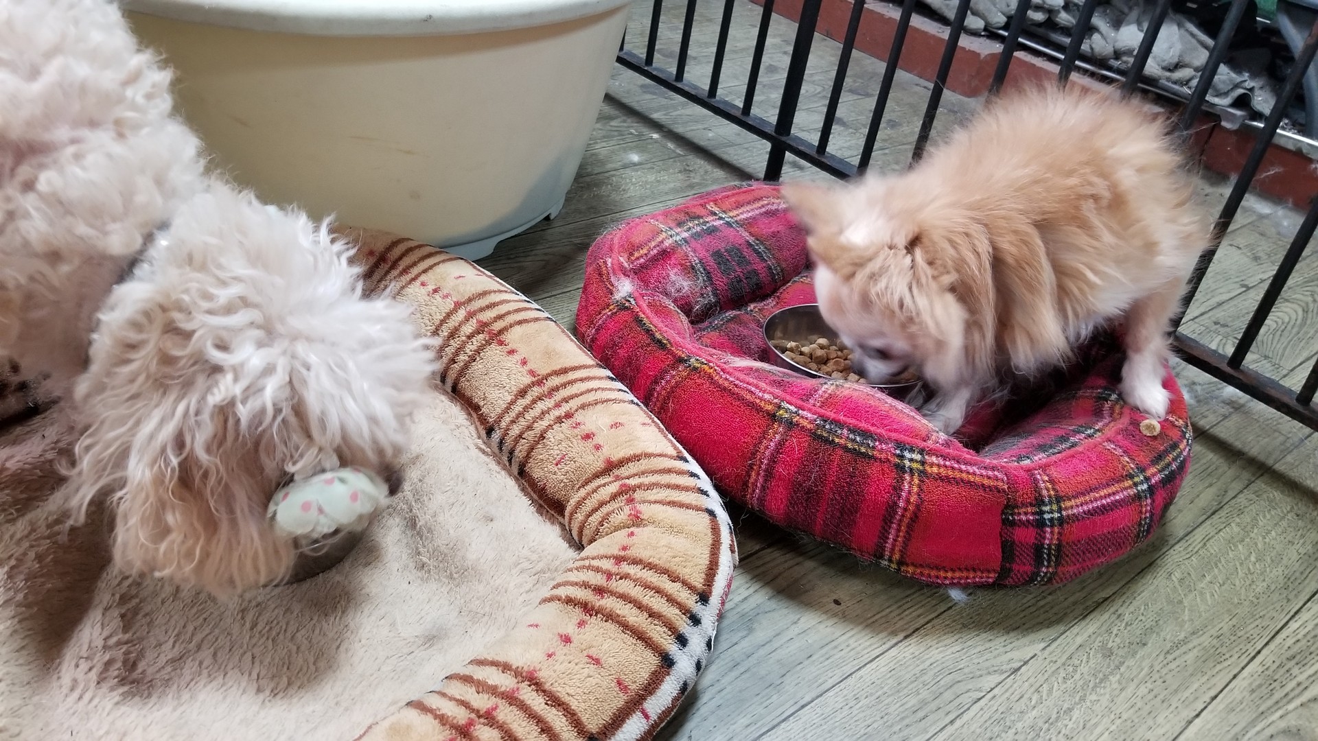 生涯お預かりトイプーベラちゃん、シーズーココくんしっかり完食しました。
