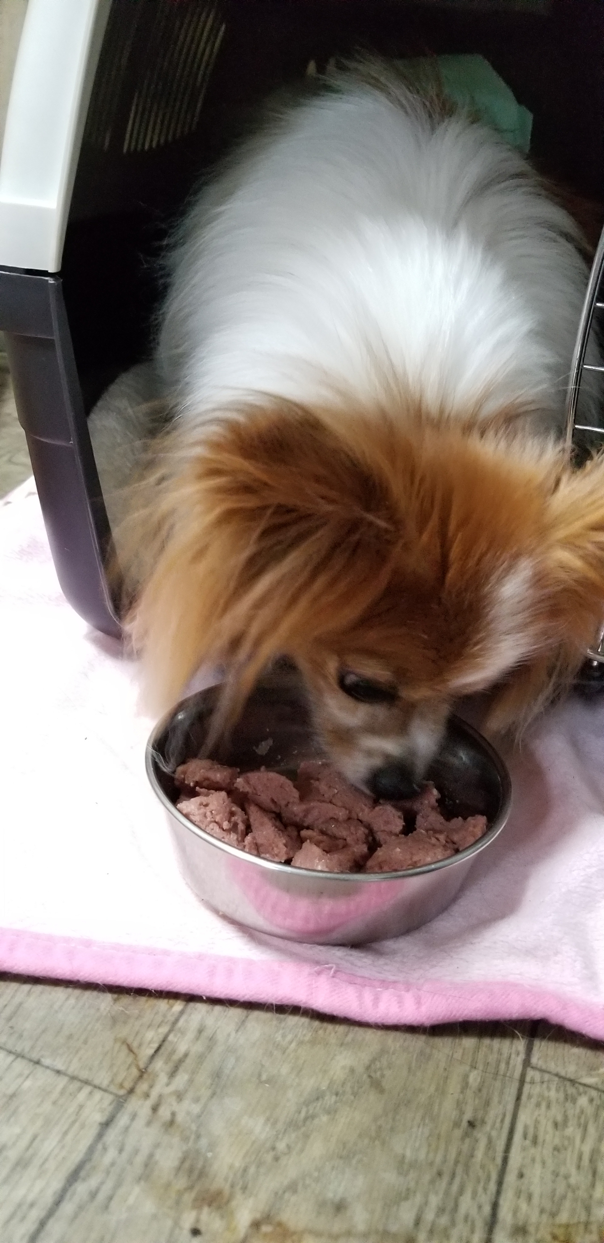 パピヨンルイくん半分食べました。しばらく置いておきます。