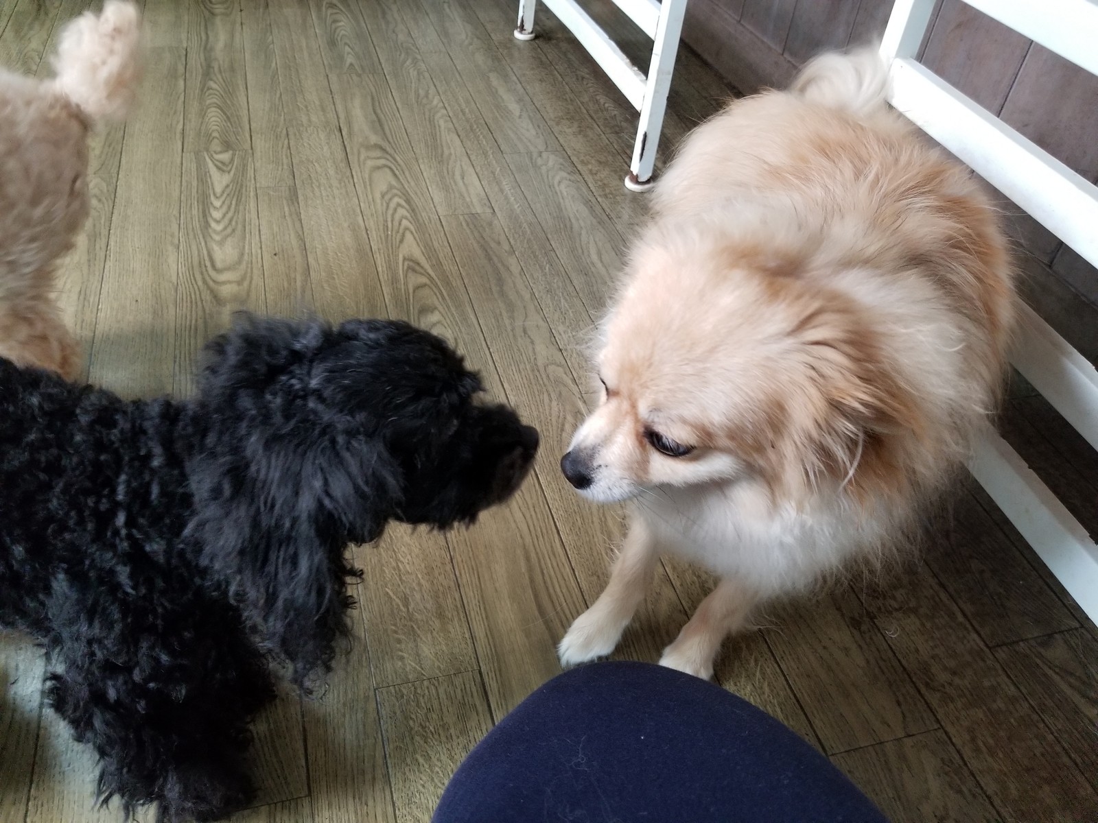 最初は少し緊張していましたが、少ししたら匂いをクンクンし合っていました。
