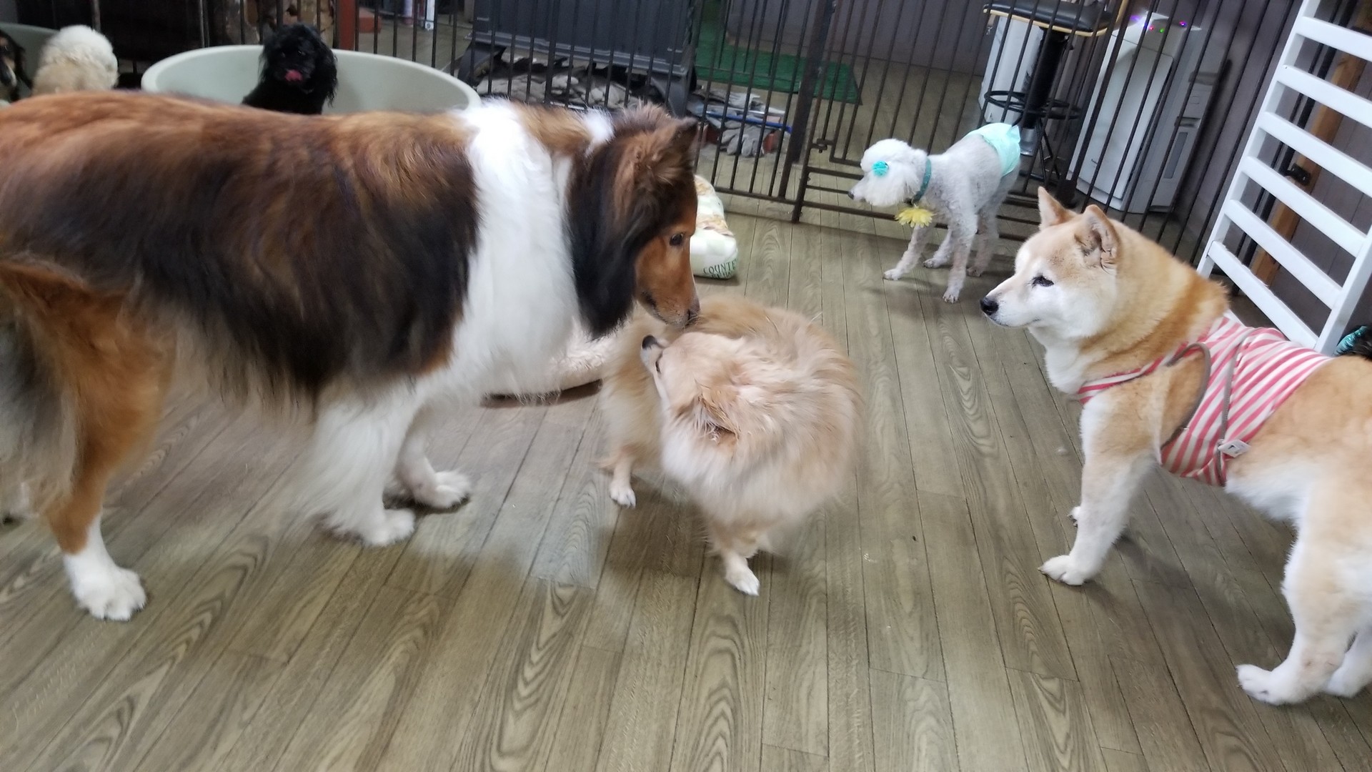 大きなわんちゃんとも少し緊張はしますが、匂いを嗅ぎあっています。