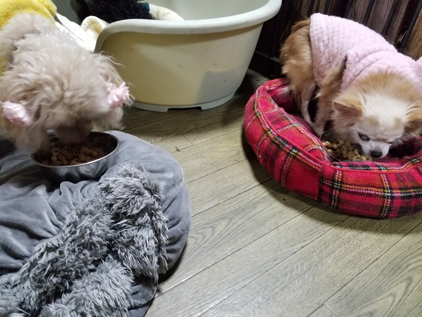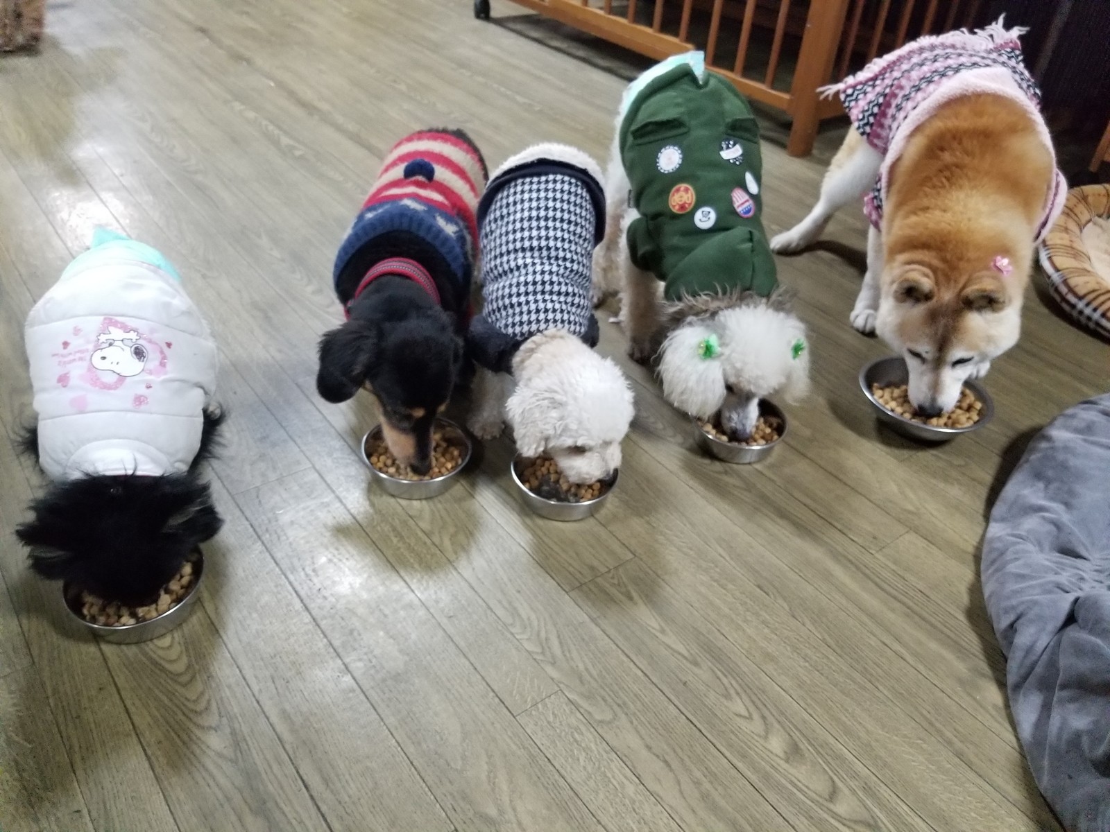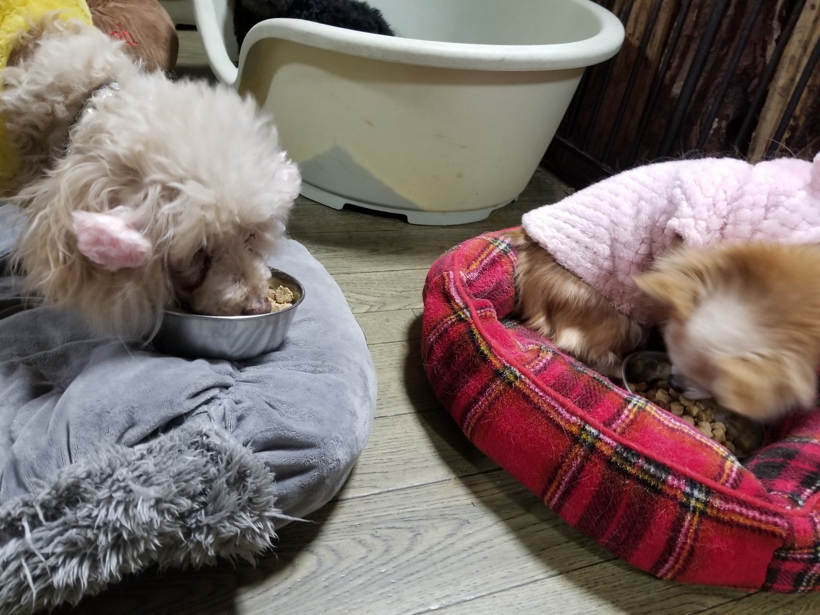 生涯預かりパピヨンパピー君とトイプーベラちゃん、ビーグルアンディ君と柴凛ちゃんしっかり完食しました。