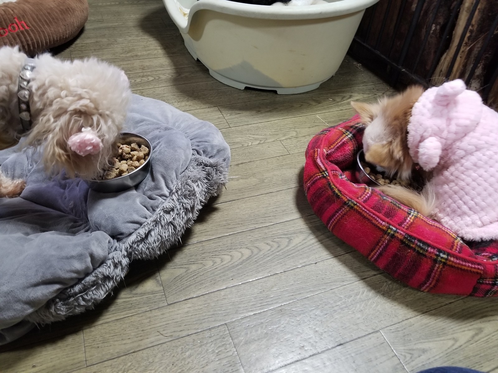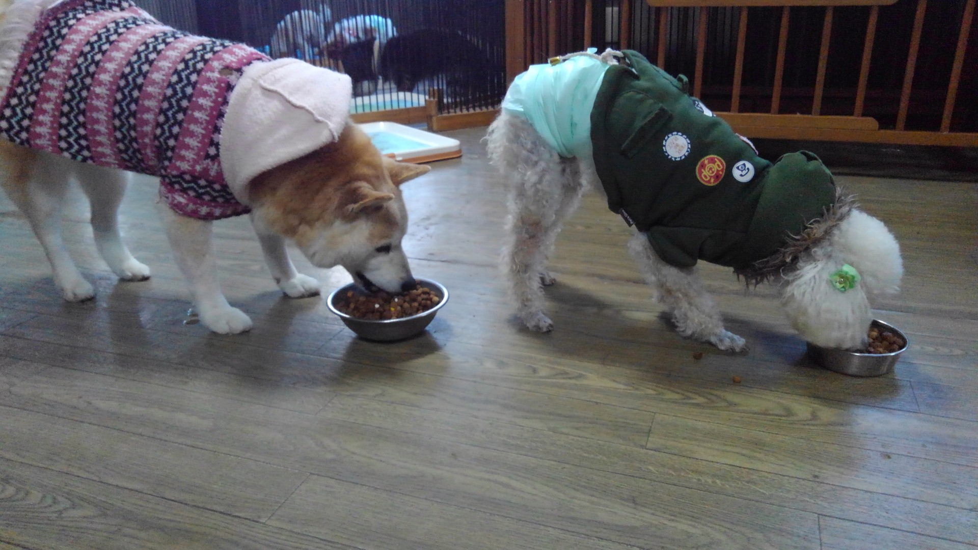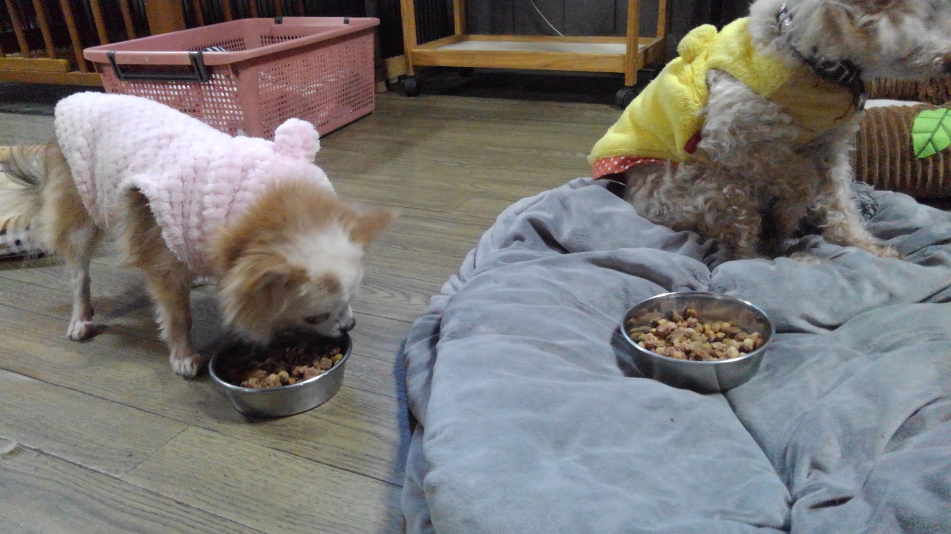 生涯預かりパピヨンパピー君とトイプーベラちゃん、ビーグルアンディ君と柴凛ちゃんしっかり完食しました。