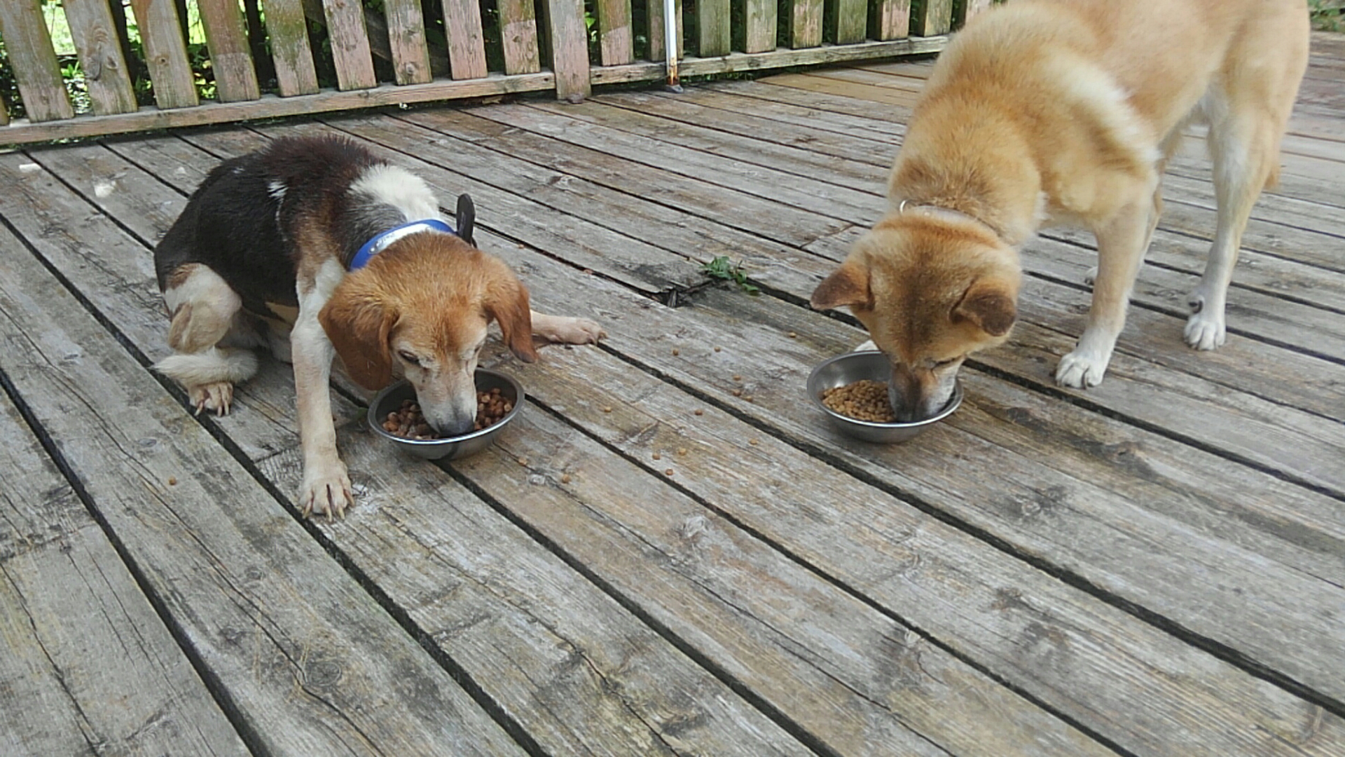 長期預かりゴールデン小太郎君とキャバリア大吉君、しっかり完食しました。