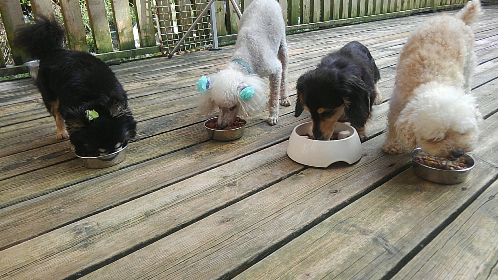 生涯預かりダックスティラミス君とロッキー君とここちゃん、トイプーベラちゃんしっかり完食しました。