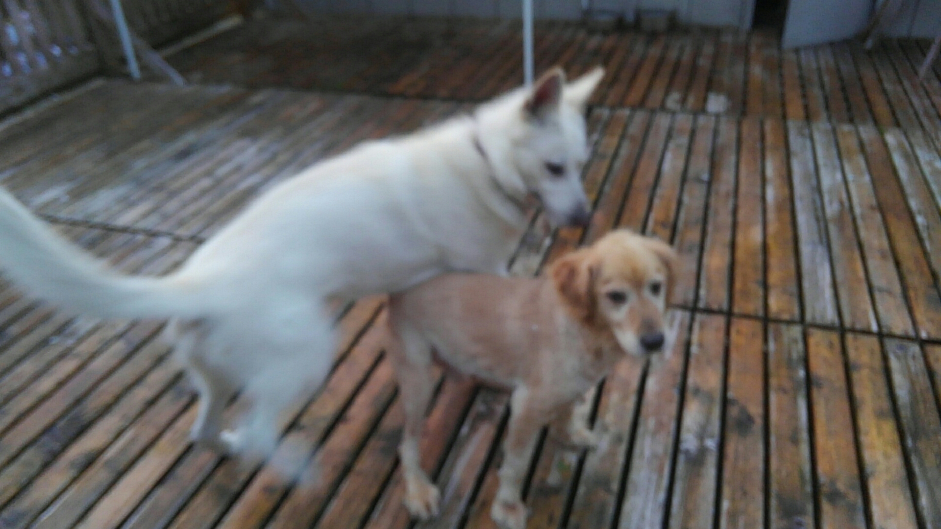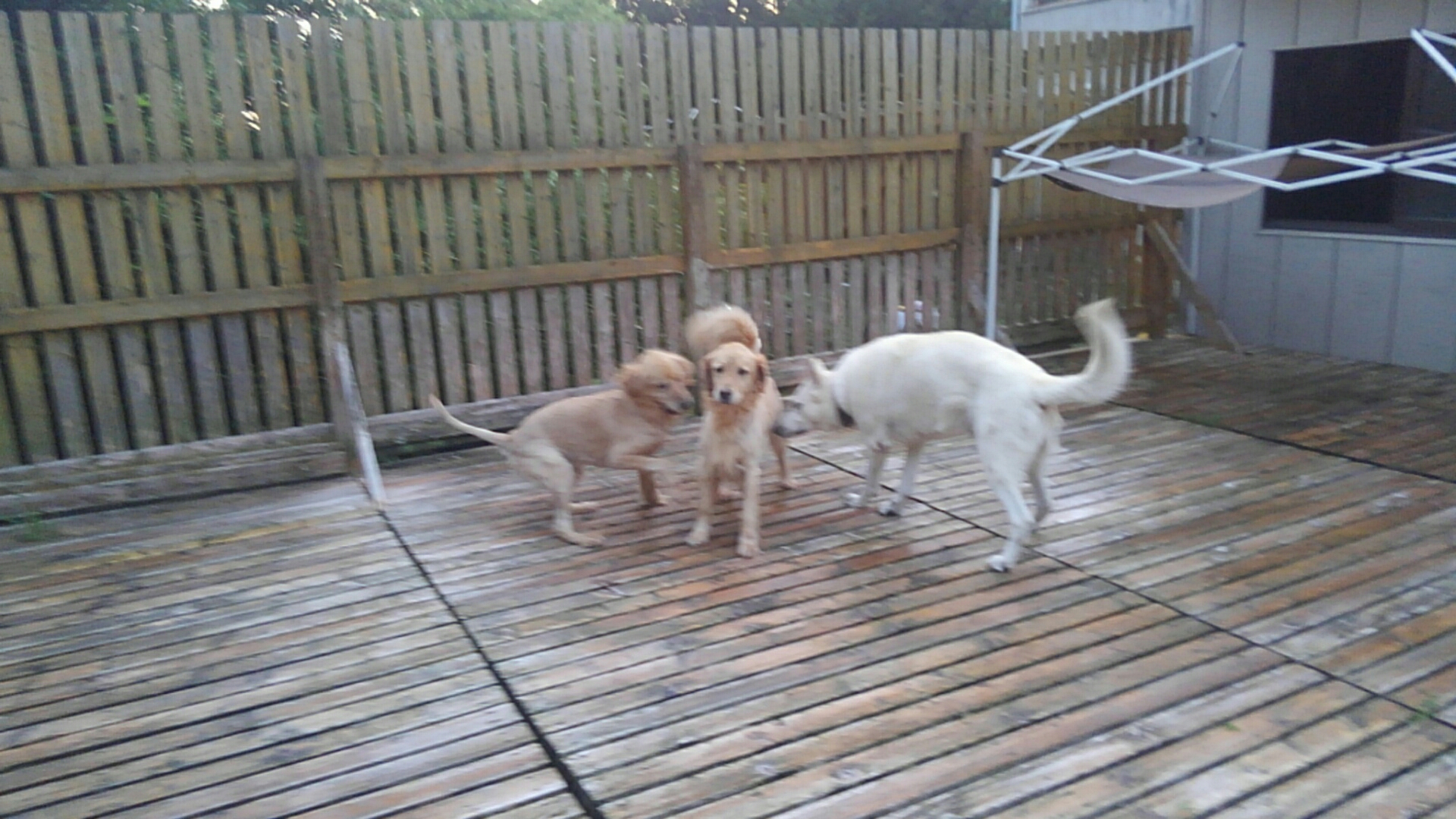 いつもの様に入ってすぐにゴールデンズと遊んでます。