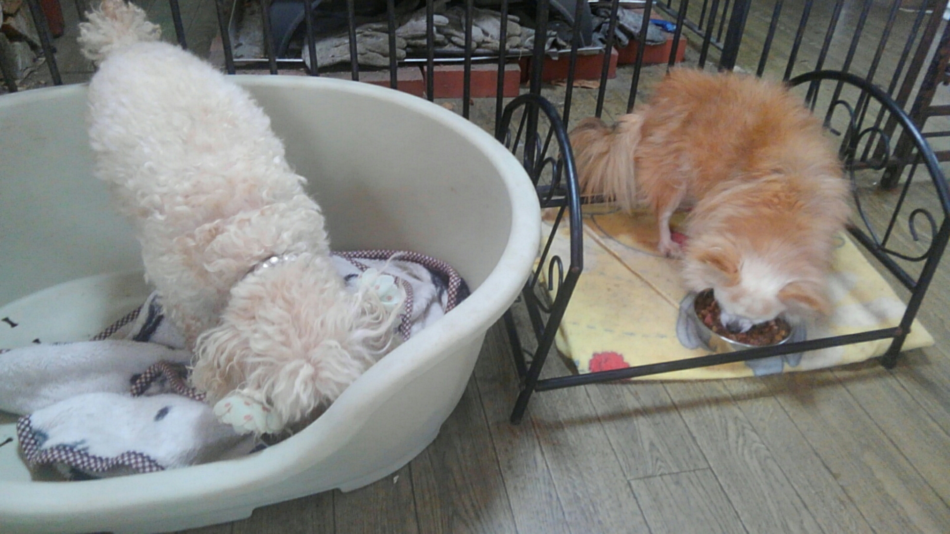 長期預かりチワワロッチちゃんとトイプーゆずちゃんとミチゾー君、しっかり完食しました。