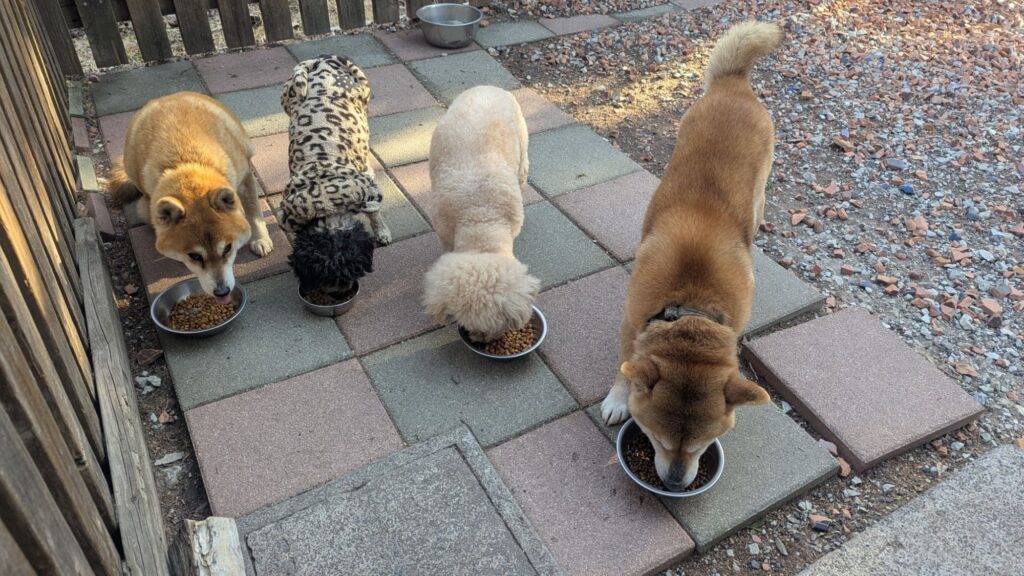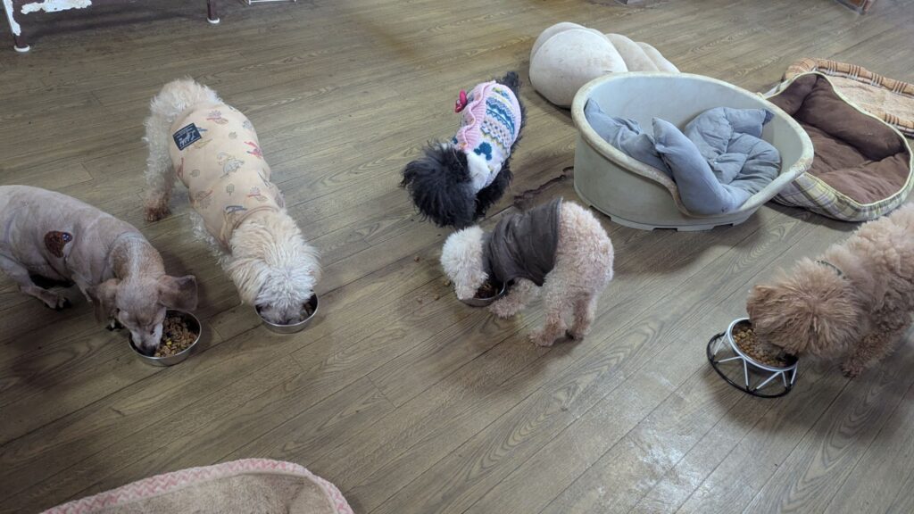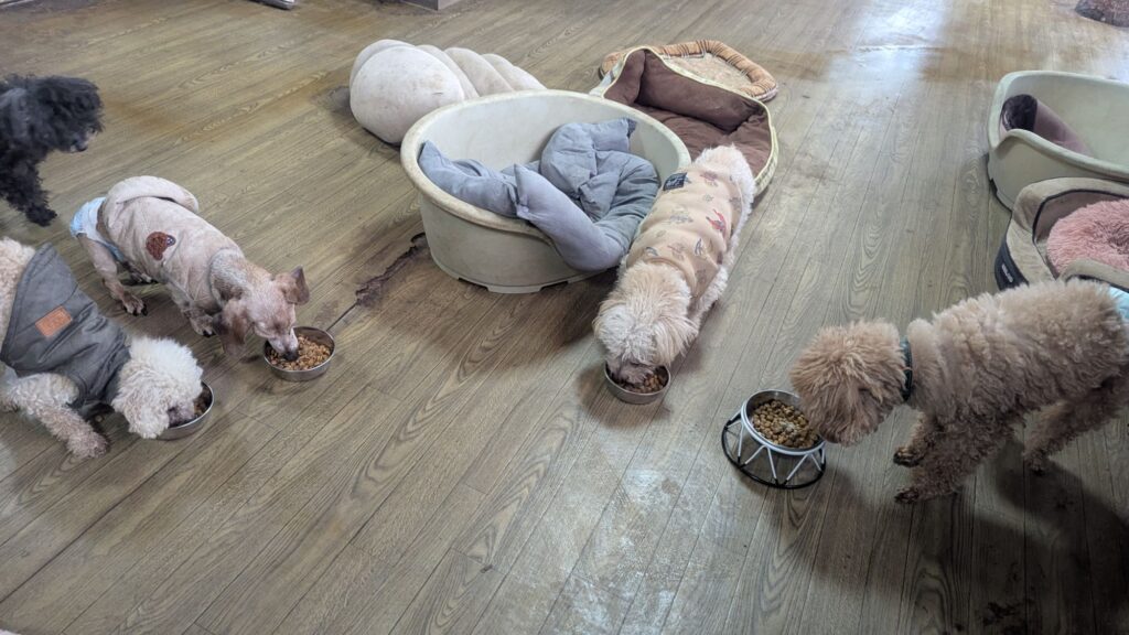 長期お預かりトイプーララくん、ゆずちゃん、ミックスチビちゃん、柴犬リキくん、さくらちゃん、プードルココちゃんしっかり完食しました。
