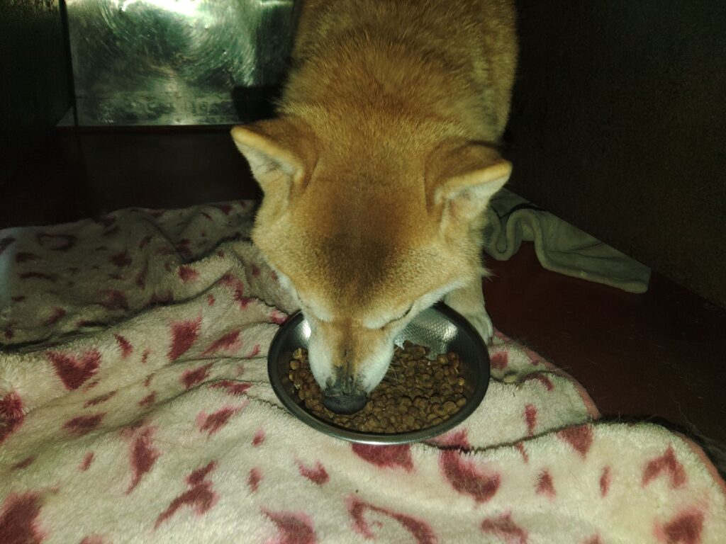 クレートの中で寝てるので今夜はこのままで