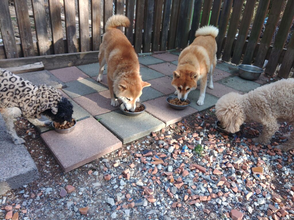 お預かり柴犬ハルちゃん、マルプーらんまるくん、ボルゾイはなこちゃん、ダックスグランくん、ミックスサーフくん、メグちゃん、トイプーコタローくん、ゴールデンきなこちゃんしっかり完食しました。