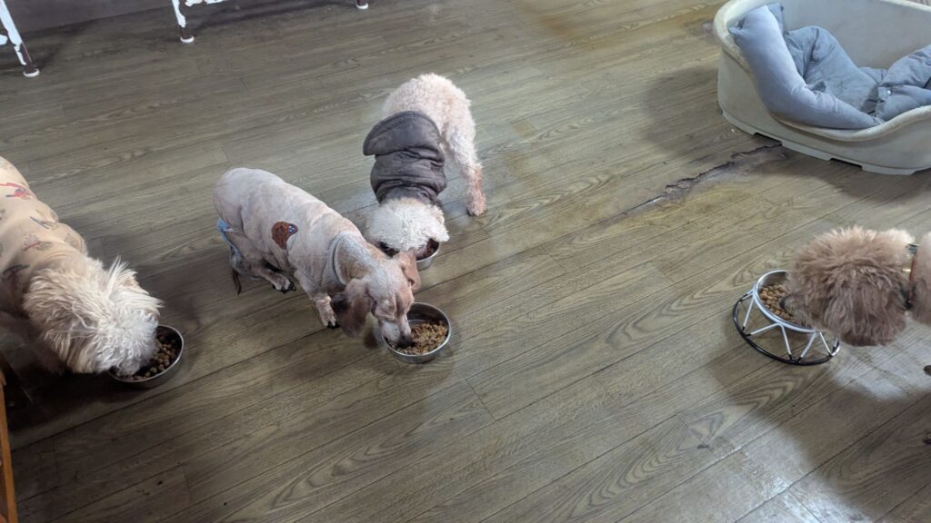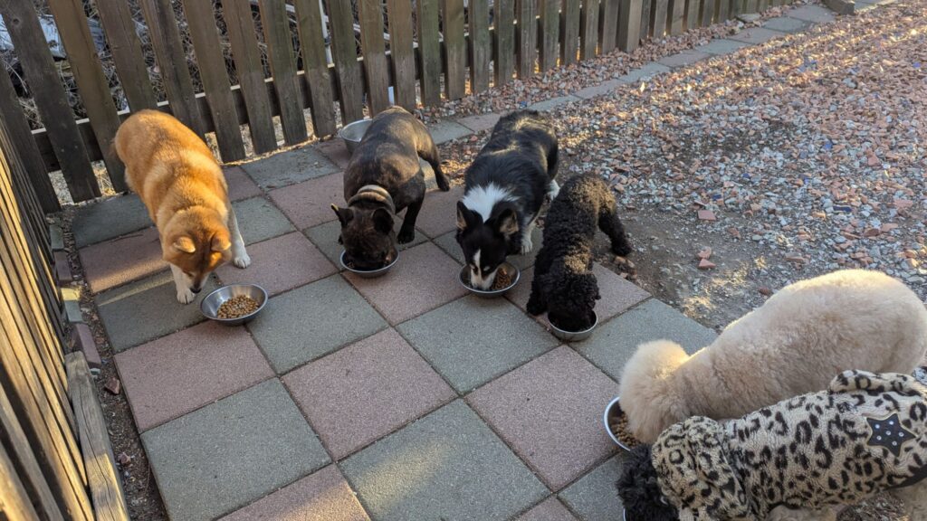 長期お預かりトイプーララくん、ゆずちゃん、ミックスチビちゃん、柴犬リキくん、プードルココちゃんしっかり完食しました。
