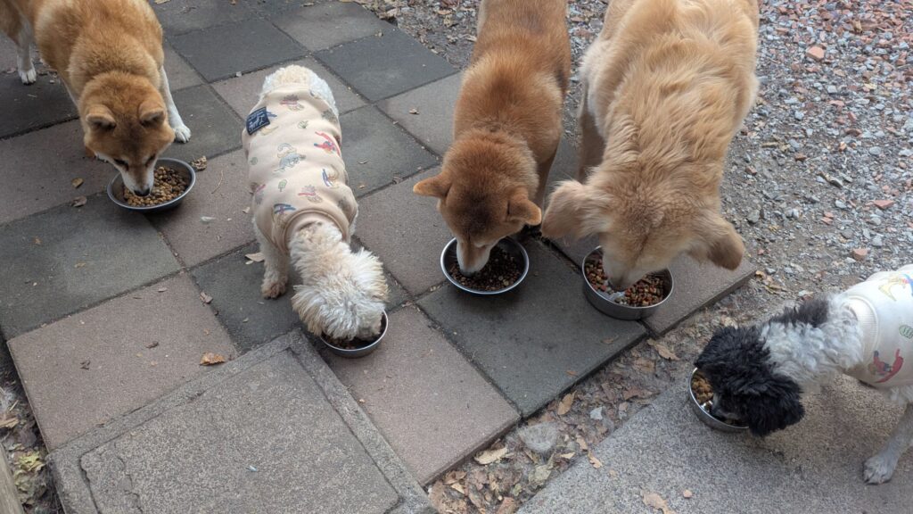 生涯お預かりミックスサスケくん、柴犬ハルちゃん、マルプーらんまるくん、ボルゾイはなこちゃんしっかり完食しました。