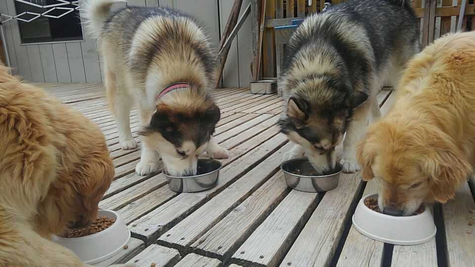 アラスカンマラミュートのカイ君とハナちゃん、しっかり完食しました。
