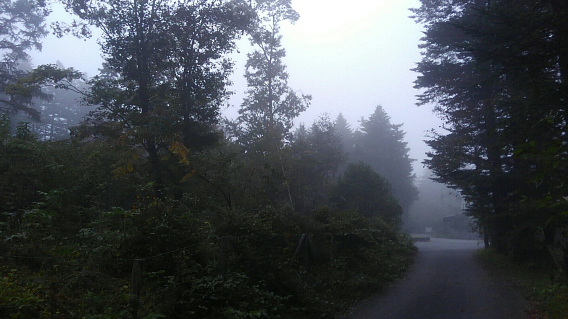 今朝の軽井沢の気温は12℃、寒い朝です。天気は霧です。